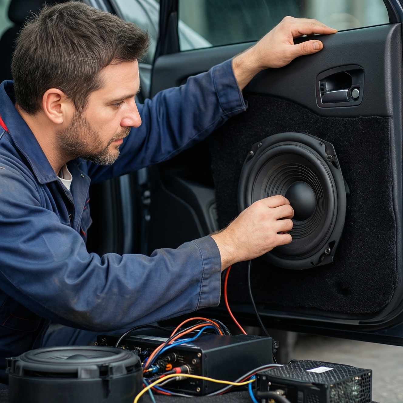 - Материалы (под задачу): вибро- и шумоизоляция дверей, проставочные кольца, герметик/лента, акустический провод.