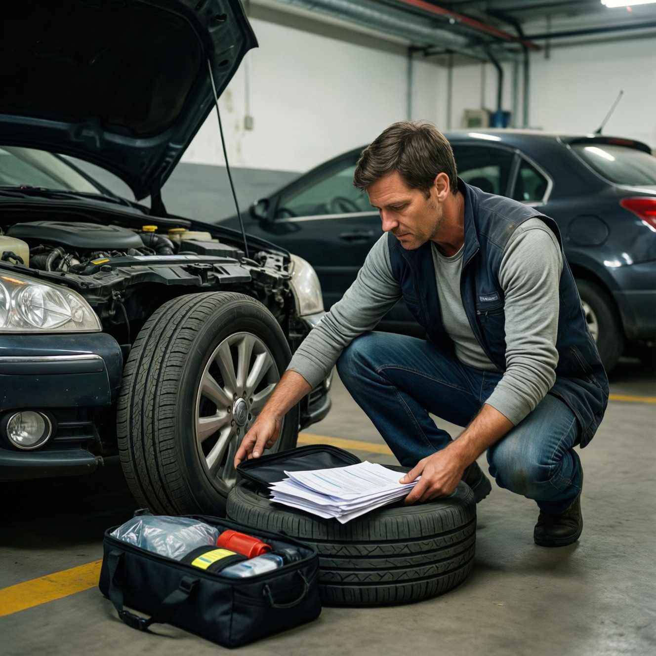 - Если есть ремкомплект шин/жгуты - держите рядом перчатки и нож.